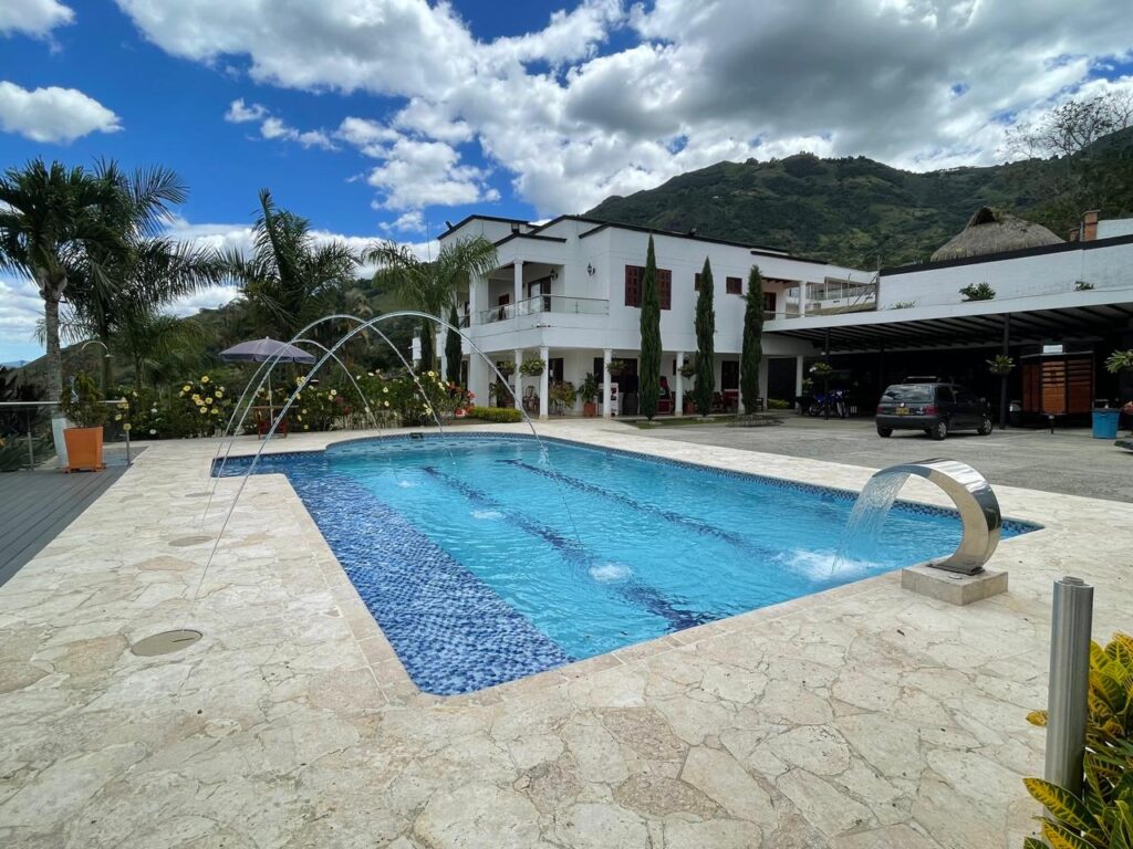 Piscina con cascada y chorros